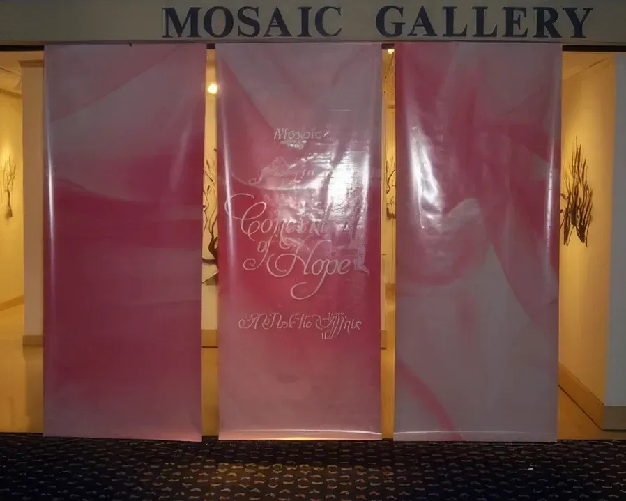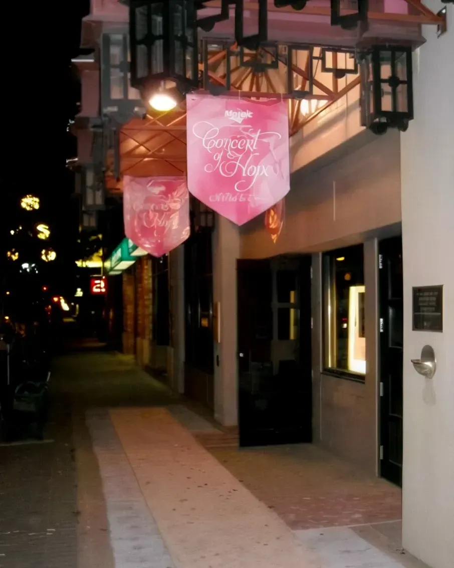 From the ground up, I developed the complete visual brand, including the signature script logotype, which was consistently applied across every touchpoint of the event for two years. The scope of work spanned environmental, print, and promotional design across a significant range of deliverables: outdoor wayfinding pennant flags, floor-to-ceiling stage backdrop, interior lobby banners, step and repeat banner, window display posters, sponsor recognition banner, credential passes and lanyards, raffle tickets, VIP meet and greet invitations, print advertising, and a multi-page event program insert.