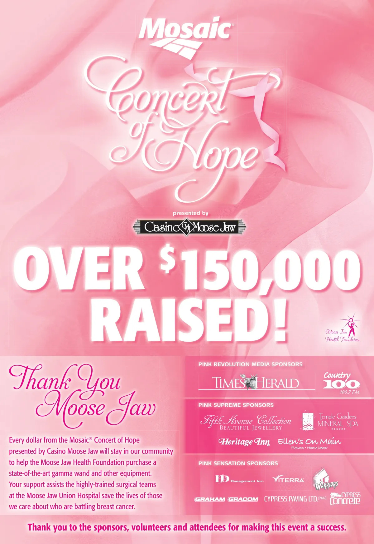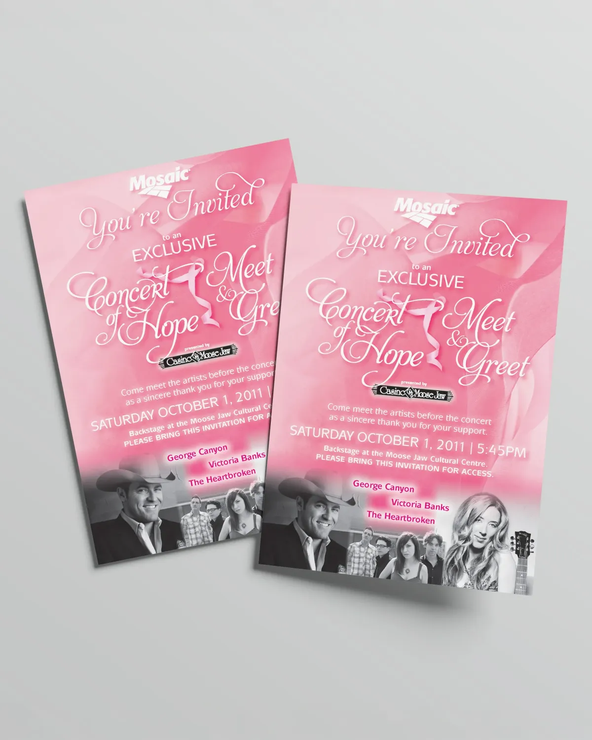 Commissioned by the Communications Director of Mosaic Potash, I served as the founding graphic designer and full visual identity producer for the Concert of Hope, an annual breast cancer fundraising event held in Moose Jaw, Saskatchewan.